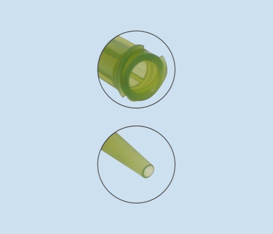 High quality, smooth flow tapered dispensing tip for controlled application of pastes, silicones, sealants, RTV's, epoxies, grease and other medium to high viscosity fluids. Double helix locking thread for safety, coloured for UV protection. Olive colour. 0.063" - 1.60mm ID. Safe for use up to 100 psi. Guaranteed silicone free materials. Packs available in 50, 500, 1000 or 5000 tips.