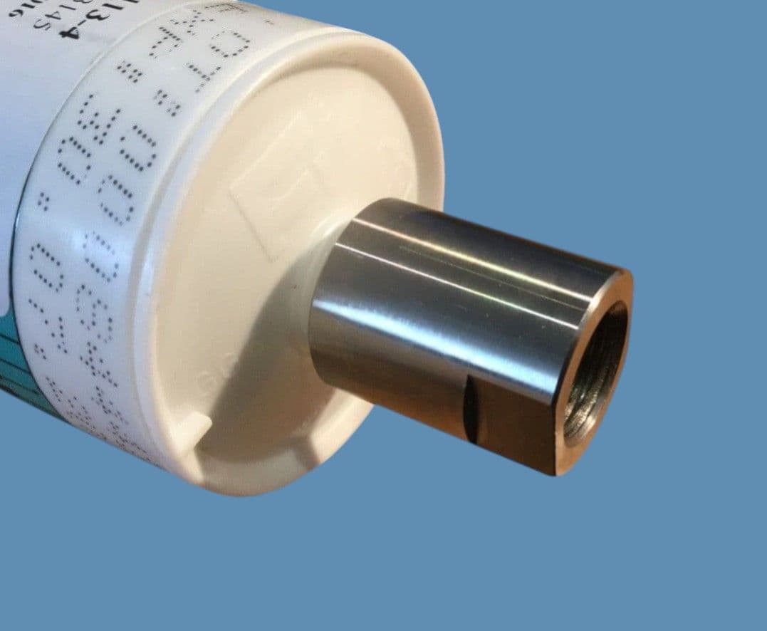 This Stainless Steel adaptor fitting is a durable and reusable product that is specifically designed for use with pre-filled 310ml (1/10 gallon) size caulking tube cartridges. These cartridges typically have an external threaded nipple that is cut to fit a nozzle. With this adaptor fitting, you can easily attach any of our dispensing nozzles to the thread. This will allow for a smooth and efficient dispensing process.