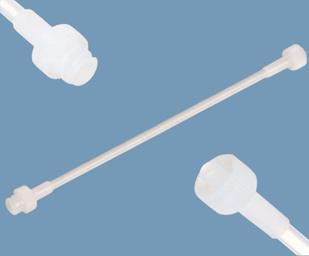 Presenting the TSD126-336PK, a superior choice for fluid management within industrial applications. This fluid line boasts a natural, flexible, and highly durable polyethylene construction, offering a diameter of 0.100" (2.54mm) and a length of 36". Each end is intricately designed with a luer lock connection, ensuring a secure and leak-free attachment to various equipment such as syringe barrels, fittings, dispense valves, and manifolds.