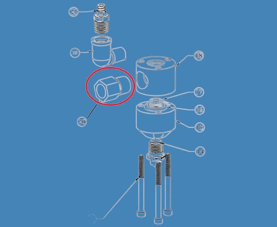 Used as a fitting from the outlet of a cartridge to a syringe filling adapter fitting.