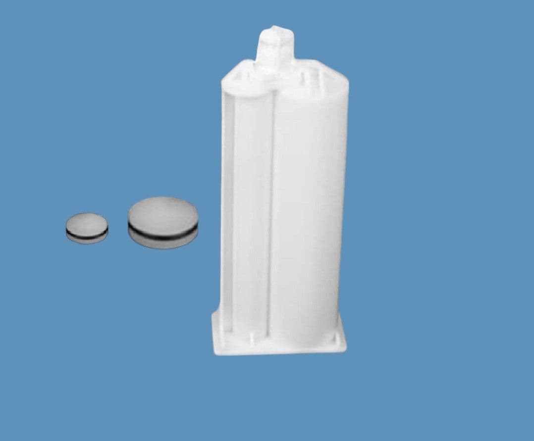 Dual cartridges are supplied in packs of 50 or 500 and include tip cap seal pre-attached and the correct ratio pistons. Pistons are the self venting type with EPDM O-Ring for larger chamber A and flat solid type with EPDM O-Ring for smaller chamber B.