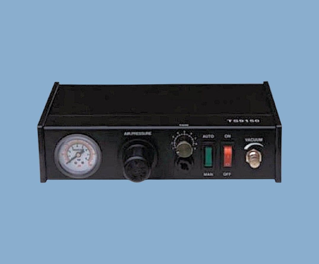 This dispensing system will ship with a starter stock of dispensing tips, tip caps and fluid lines. The only requirement for this system is a compressed air supply of 60-75 psi. We recommend that the air supply is filtered against moisture if using reactive adhesives such as Cyanoacrylates. We supply low cost 5-micron filters (part TSD800-6).
