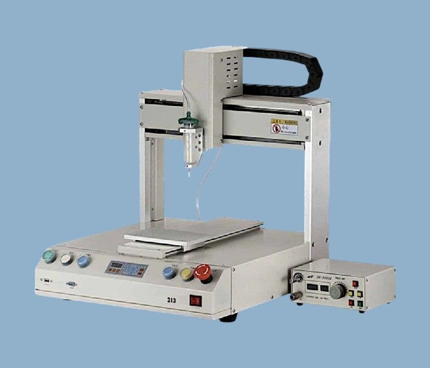The AD series bench top dispensing robots are a cost effective solution combining high level programming technology with precision placement engineering. The AD series are a compact, heavy duty design, which are easily programmed using simple step-by-step instructions. A robust cast construction provides additional stability when working to fine tolerances. Systems will dispense virtually any assembly fluid and adhesive or liquid paste, from thin, watery liquids and solvents to thick gels, silicones and brazing pastes. All are applied quickly, accurately to reduce waste, mess and hand fatigue.