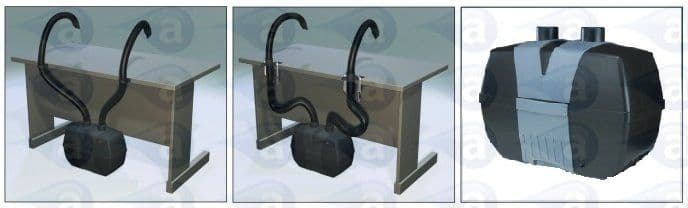 With a static pressure of 850 Pascal (3.5 Inch WC) the filter unit delivers the suction force to assure a long filter lifetime and low operating costs. The air inlet ports allow the connection of 50 mm (2 Inch) or 63 mm (2.5 Inch) diameter exhaust arms. This package includes the main system with (2) flexible arms.