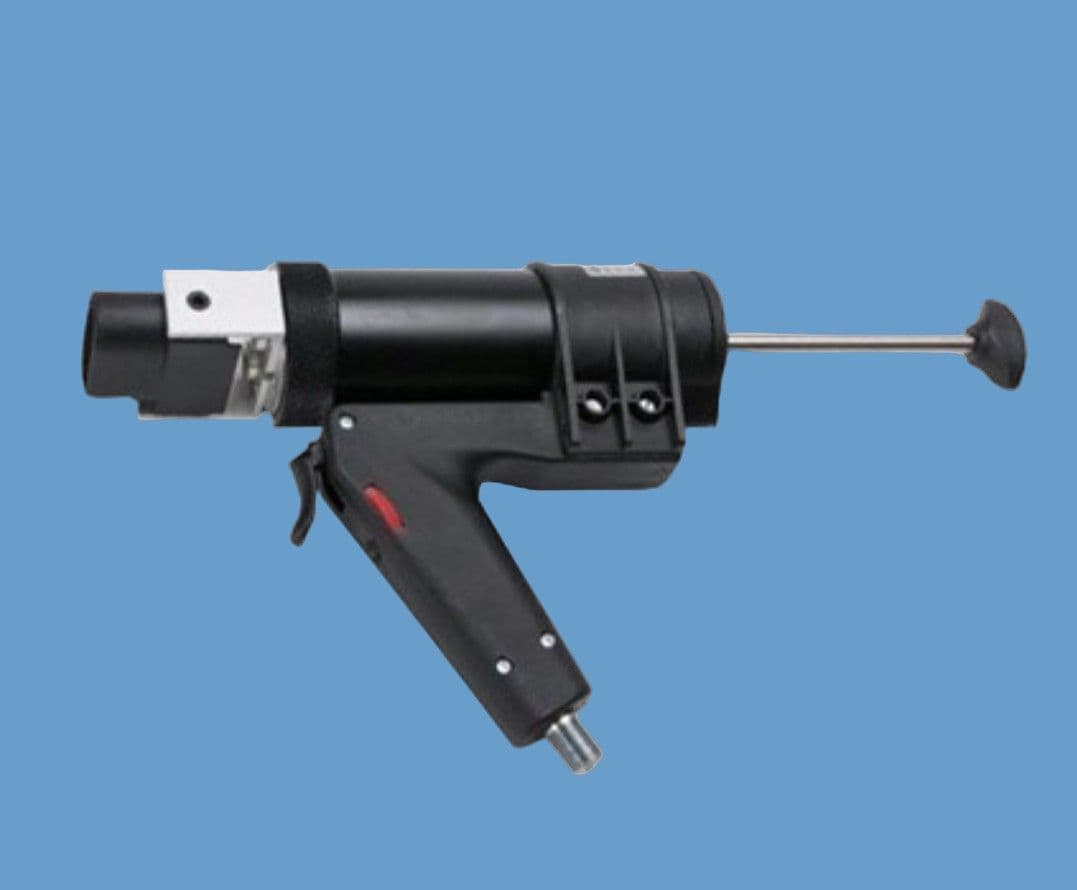 For adhesives which are supplied in 50ml two-part, side-by-side syringe cartridges and that push the adhesive through a static mixing nozzle. The lightweight portability and durable construction of the pneumatic guns make them well suited for many assembly operations in various markets such as aerospace, electronics, construction and automotive.