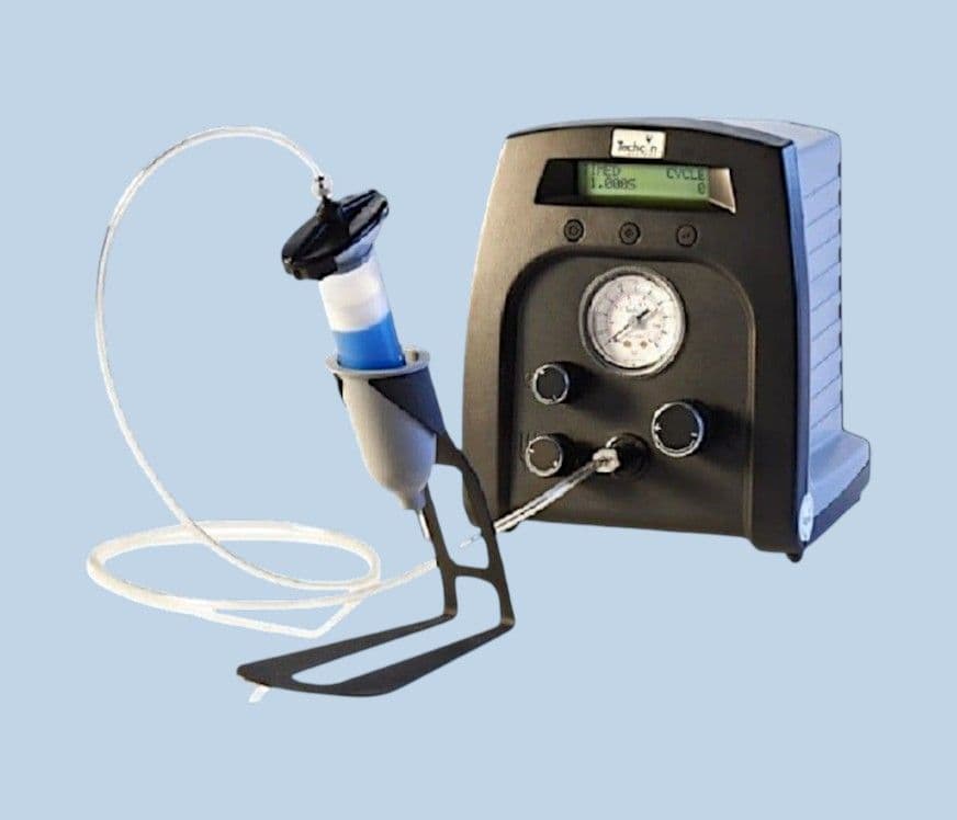 This is a system with an adjustable 0-15 psi adjustable air regulator for most low viscosity liquids and adhesives or use the 0-100 psi TS250 version for all fluids, liquids, gels and pastes. You hold the syringe like a pen, adjust the air pressure to suit the liquid being dispensed then press the foot pedal to apply. When the pedal is released, the deposit instantly stops without drips or oozing. It is safe and simple to use and reduces time spent manually applying liquids. The dispenser is supplied with a user guide.