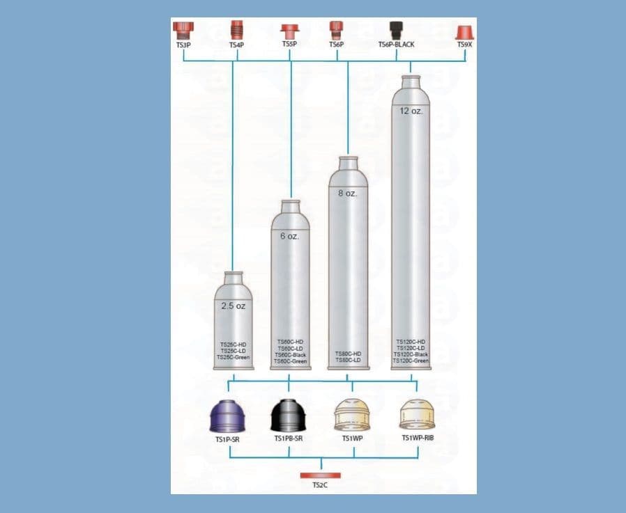 For Cartridge Sizes 2.5 oz, 6 oz, 8 oz, 12 oz