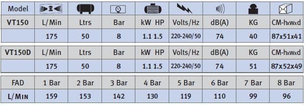And, uniquely on this size of compressor, the Duplex units are fitted with a sequential start system which enables these 3.0Hp and 4.0Hp systems to run off a 20 amp single phase power source reducing installation costs and start up load. Every compressor is protected by a comprehensive warranty extending to 5 years on the air receiver and 2 years for the compressor (subject to terms). VTS Range, the perfect compressor for laboratories, food industry, drink dispensing, dental surgeries, medical equipment and all other clean-air critical applications.